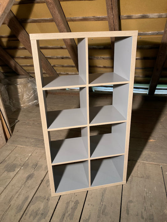 Graues Holz-Regal mit 8 Fächern