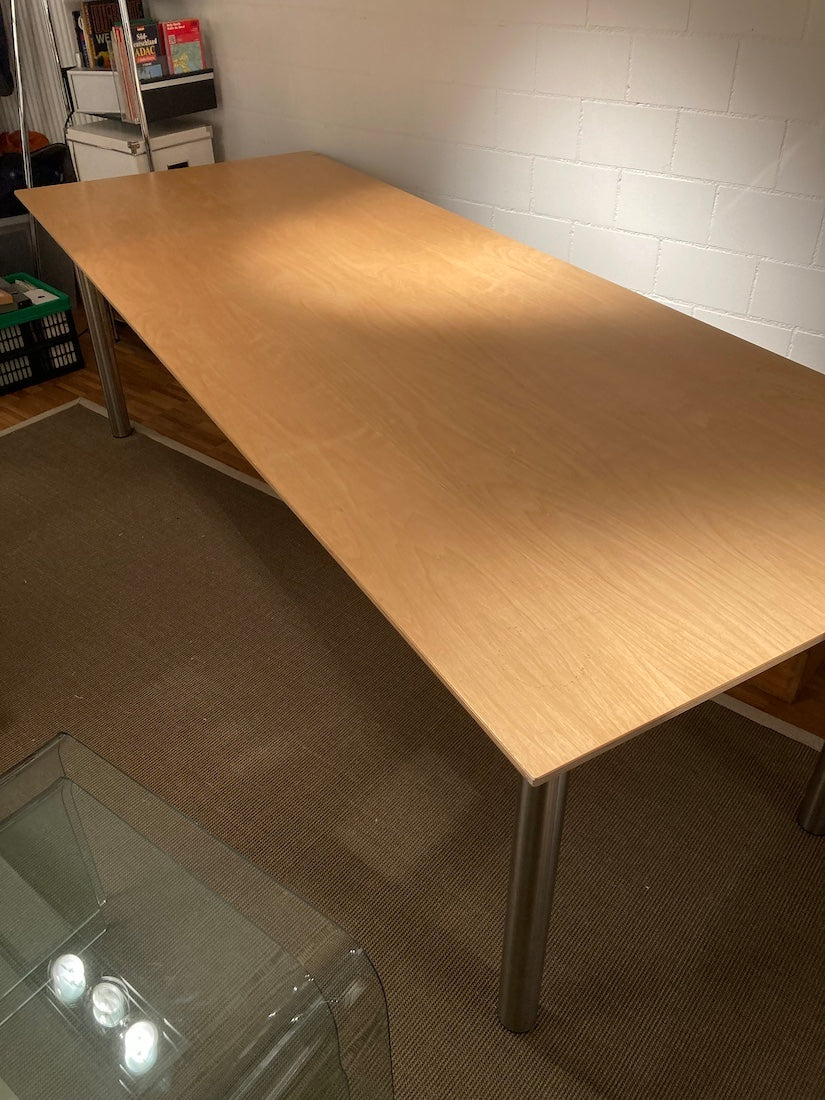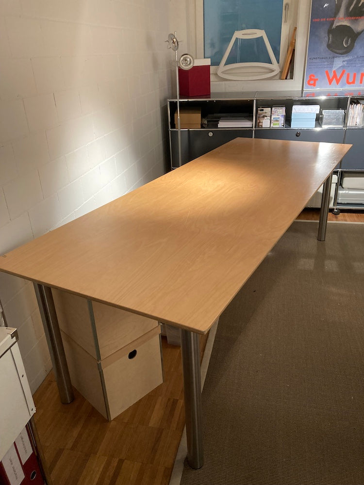 Birkenholz Tisch massiv, Birkensperrholzplatte / Tischbeine Chromstahl matt / zerlegbar